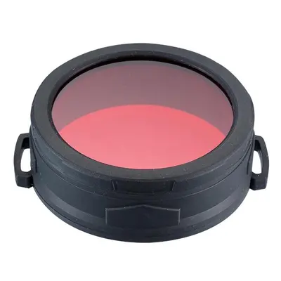 Der Nitecore Farbfilter in der Farbe rot erzeugt einen roten Lichstrahl. Die Leuchtweite wird durch die Verwendung des Aufsatzfilter um ca 50% reduziert.